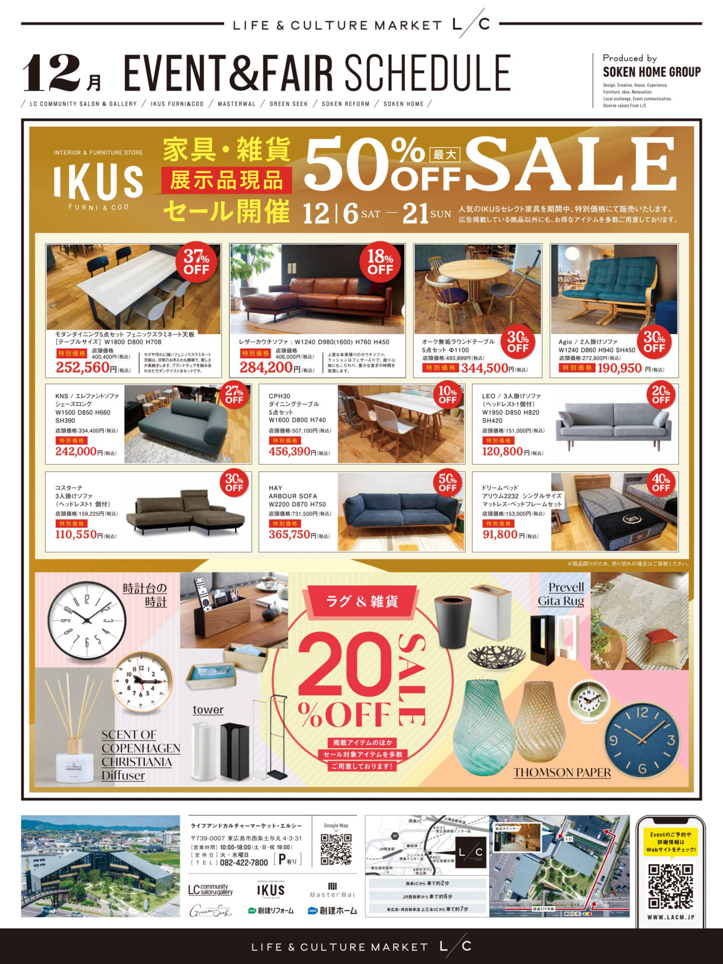 家具は最大50%オフ、雑貨・ラグは20%オフ。
