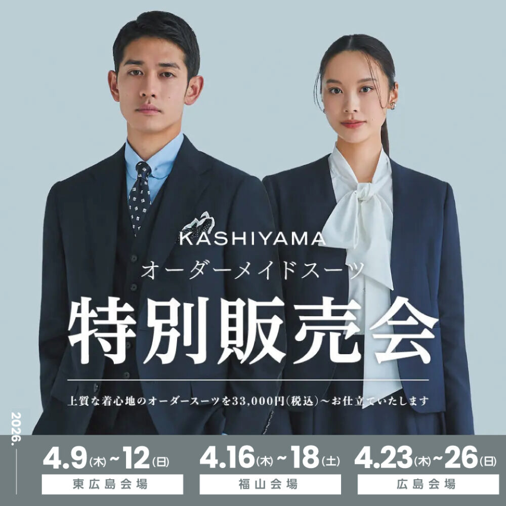KASHIYAMA オーダーメイドスーツ特別販売会26春(東広島・広島・福山)