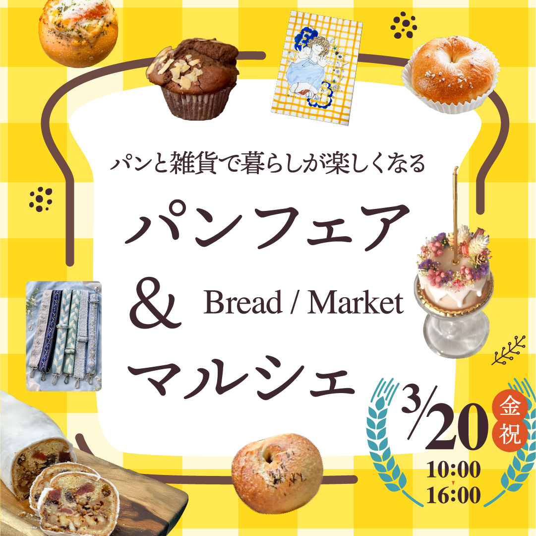 こだわりのパン屋さんが集まる「パンフェア」インスタ映え間違いなしのお菓子が揃う「焼き菓子博」アートワークショップや雑貨販売など個性あふれるショップが並ぶマルシェも同時開催!育児や資産運用セミナーなど学んで食べて楽しめるわくわく盛りだくさんのイベントです!