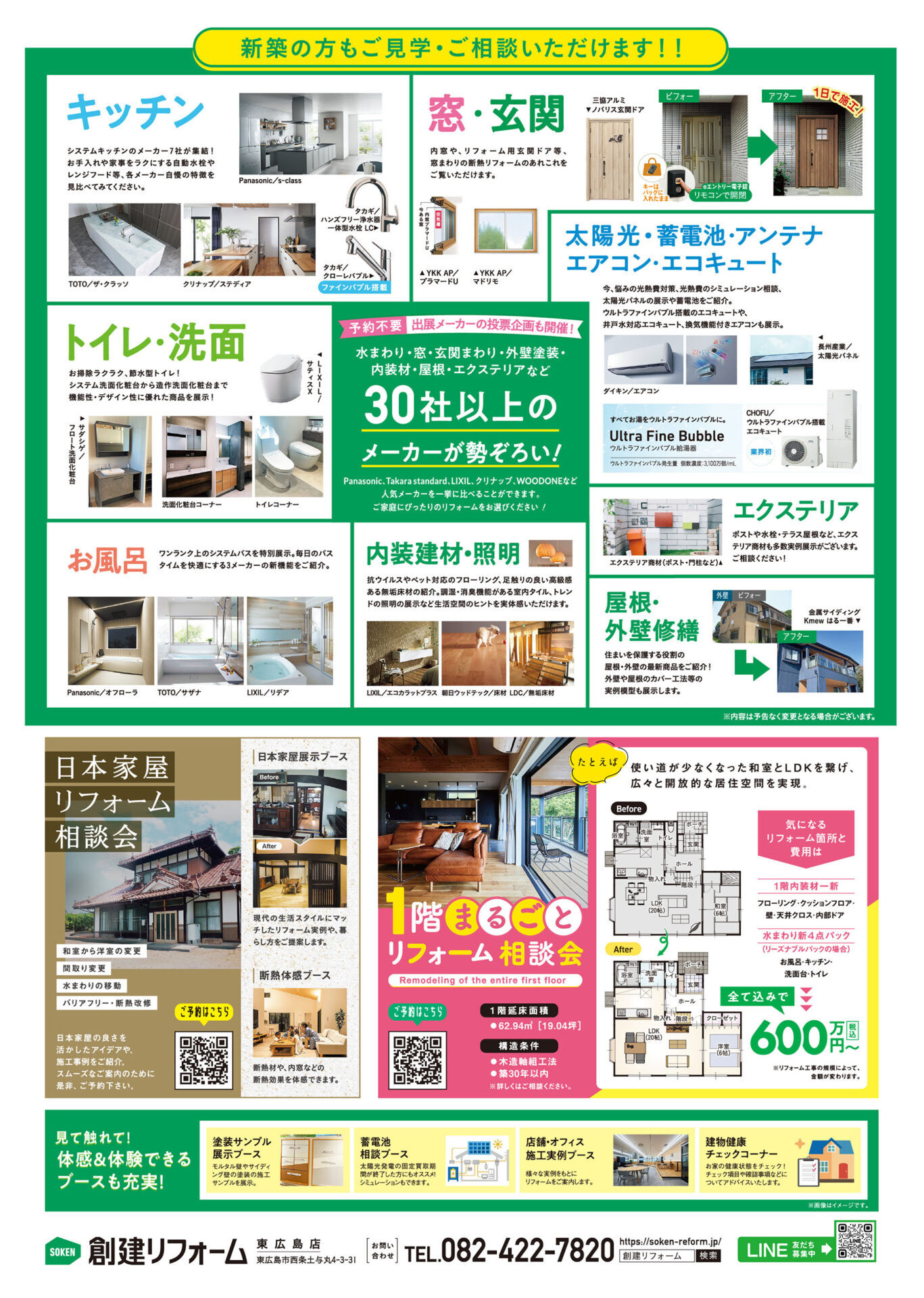 毎回大好評のリフォームの祭典が再び開催!目玉の住宅設備大展示会では Panasonic、TOTO、LIXIL、タカラスタンダード、クリナップなど、人気メーカー30社以上が集結し、最新住宅設備を一挙に展示します。