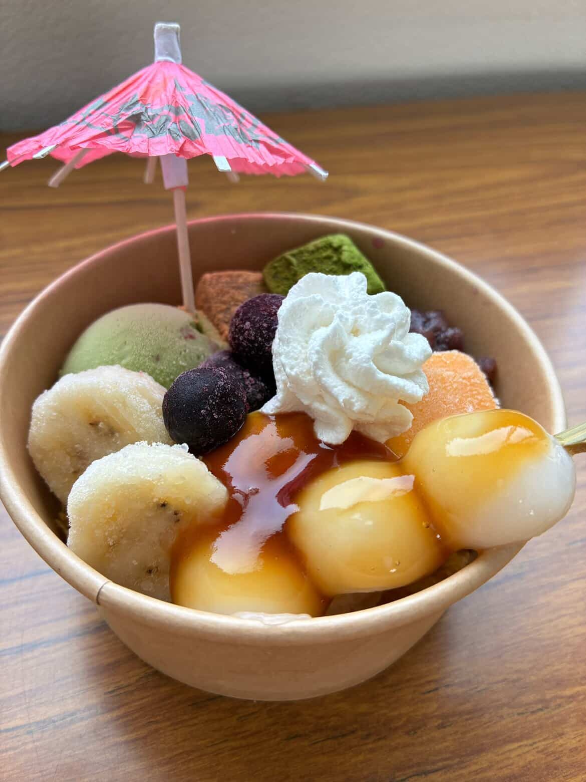 二重焼き、白玉団子、白玉ぜんざい、大学芋、和パフェ、スムージー、珈琲をご用意しております。
